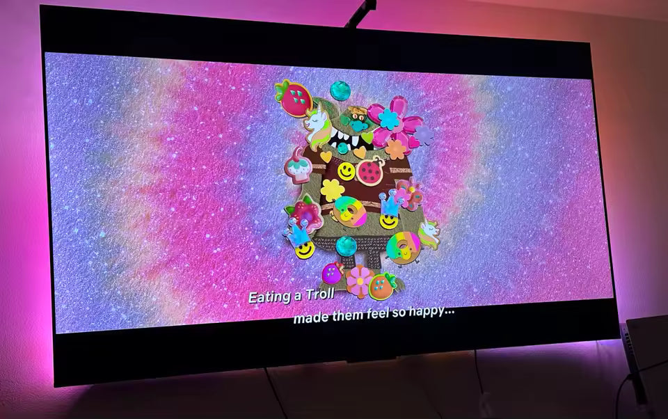 Fits my tv perfectly. Installation took only 20 minutes. I love the color variations and how it matches the scenes of the shows. I will be buying this brand for all of our tvs. Definitely recommend it. The app is also very easy to use.